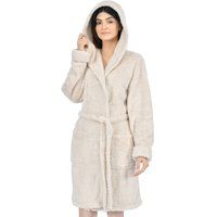 Stay cosy in this luxurious womens hooded dressing gown, designed with a textured faux fur outer and a soft flannel fleece reverse. This winter-ready robe offers exceptional warmth and comfort, perfect for lounging, relaxing, or keeping snug on chilly evenings. | Smart Living Womens Textured Faux Fur Hooded Dressing Gown Flannel Fleece Robe in Natural | Size: Large - Manufacturers part number: Smart Living_5056242880660