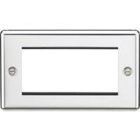 Suitable for use with euro module inserts. Ideal for creating bespoke TV/DATA/HDMI/USB/TEL installations. Rounded edge metal design. Accepts four 25 x 50mm, or two 50 x 50mm euro module or a combination of both. Rounded edge design with built in gasket. Minimum mounting box depth: dependent on euro module used Raised Rounded Profile Screwed Faceplate Raised Rounded Profile Screwed Faceplate - Manufacturers part number: CL4GPC