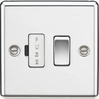 Raised, rounded-edge metal design fused spur. Matching rocker and fuse holder. Built-in gasket. Raised Rounded Profile Screwed Faceplate Requires 25mm Back Box Captive Terminal Screws Polished Chrome Rounded Edge design Screwed faceplate Switched Built in gasket Certified to BS 1363-4 - Manufacturers part number: CL63PC