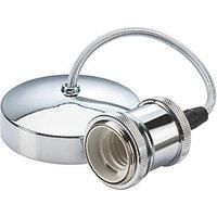 Vintage style metal pendant lamp holder. Pre-wired to reduce time on installation. - T2 rated 80W Incandescent /LED - E27 lamp base - Fixed drop - Pre-wired - Terminal capacity: 2 x 1.5mm£ - Certified to BS EN 60598-2-1, BS EN 60598-1Specification: Diameter (mm): 51.5Projection (mm): 286Construction: Premium grade steelFinish: Polished ChromeClass: IIIP Rating: IP20Primary Voltage: 230V 50HzCable Length: 0.15Lamp Base: E27Lamp Included: NoDimmable: Lamp dependentMax. Wattage: 80Earth Terminal: Yes - Manufacturers part number: 8271PC