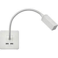 Get offerScrewless reading light solution with touch dimmer and dual USB charger - IP20 for indoor use only - Matches existing Screwless range - 2W LED reading light - 3000K - ON/OFF and touch dimming control on head unit - Dual USB Charger A+A (5V DC 2.4A shared) - Min mounting depth: 25-35mm depending on wiring conditionsTechnical SpecificationProjection: 372Recessed Depth: 20Min. Mounting Box Depth: 25-35mm (dependent on wiring conditions)Construction: Premium grade steelFinish: Matt WhiteClass: IIP Rating: IP20Primary Voltage: 230V 50HzLamp Technology: LEDDimmable: NoL70B50: 30000Energy Rating (Class) post 2021 SLR: GBeam Angle: 120CCT: 3000Light Colour: Warm WhiteLumens: 55Lumens (Light Source only): 70Wattage: 2Efficacy: 37.5CRI: >80Technical Specification:Finish: Matt White Colour Temperature (K): 3000 IP Rating: IP20 Dimmable: No Energy Rating: G Light Colour: Warm White Wattage: 2 WattDimensions: Height: 88mmWeight: 0.302KgWarranty: 2 Years - Manufacturers part number: SFRLMW