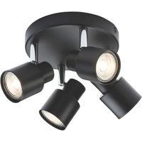 Quad plate GU10 spotlight in matt black finish, with adjustable directional heads. Suitable for commercial and domestic use. Matching items and different colour options available. - Adjustable heads 350° rotation, 90° tilt - Dimmable subject to lamp 50W max. GU10 (lamps not included)Technical Specification:Diameter (mm): 54Projection (mm): 125Tilt : 90Rotation: 350Construction: Pressed steelFinish: Matt BlackClass: IIP Rating: IP20Primary Voltage: 230V 50HzLamp Technology: Halogen / LED CompatibleLamp Base: GU10Lamp Included: NoDimmable: Lamp dependentMax. Wattage: 50Weight: 0.75KgWarranty: 1 Year - Manufacturers part number: 779GA