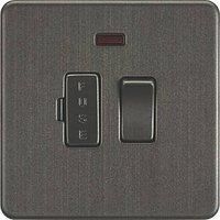 Fused spur solution in flawless Screwless low profile metal design with matching fuse holder and rocker - 13A rated - Switched - Screwless low profile design with built in gasket - Certified to BS 1363-4 - Minimum mounting box depth 25mmTechnical Specification:Projection (mm): 4.3Min. Mounting Box Depth (mm): 25mmConstruction: Premium grade steelFinish: Smoked BronzeClass: IIP Rating: IP20Primary Voltage: 230V 50HzEarth Terminal: YesNeon Indicator: YesDimensions: Height: 88mmWeight: 0.189KgWarranty: 15 Years - Manufacturers part number: SF6300NSB