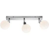 Triple bar IP44 G9 spotlight, in polished chrome finish, with opal glass orbs. The frosted glass gives a gentle and even diffused light output, adding a stunning feature for any room. Also available in single and triple spotlight, in polished chrome and matt black finish - Adjustable head 350° rotation, 90° tilt - Suitable for ceiling and wall mounting - Opal glass orbs - Dimmable subject to lamp 3 x 25W. max G9 (lamps not included)Technical Specification:Diameter (mm): 100Projection (mm): 187Tilt : 90Rotation: 350Construction: Pressed steelConstruction 2: & glassFinish: Polished ChromeClass: IIP Rating: IP44Primary Voltage: 230V 50HzDiffuser: FrostedLamp Technology: Halogen / LED CompatibleLamp Base: G9Lamp Included: NoDimmable: Lamp dependentMax. Wattage: 25Weight: 0.855KgWarranty: 1 Year - Manufacturers part number: 853GA