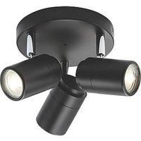 Triple IP44 GU10 spotlight, in a smooth matt black finish. Ideal for domestic and commercial use. Also available in single and triple bar spotlight, in matt black, matt white and polished chrome finish. - Adjustable head 350° rotation, 90° tilt - Frosted glass orbs - Dimmable subject to lamp 3 x 20W. max GU10 (lamps not included)Technical Specification:Diameter (mm): 246Projection (mm): 122Tilt : 90Rotation: 350Construction: Die-cast aluminiumConstruction 2: & glassFinish: Matt BlackClass: IIP Rating: IP44Primary Voltage: 230V 50HzDiffuser: ClearLamp Technology: Halogen / LED CompatibleLamp Base: GU10Lamp Included: NoDimmable: Lamp dependentMax. Wattage: 20Weight: 0.885KgWarranty: 1 Year - Manufacturers part numbers: BA03P3MB|152GE