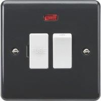 13A switched fused spur with neon [Part M Compliant]The Curved Edge range has been expanded to include a range of wiring accessories that comply with current Building Regulations Part M. It is recommended that switches contrast with the front plate which in turn contrast with the wall. This range satisfies both recommendations. With a Light Reflectance Value (LRV) of approx. 8.9 (Part M recommends a contrast of 30% LRF between front plate and wall) Benefits Inherent Anti-microbial properties €“ 3rd party tested Certified to all relevant British Safety standards Features 13A 230V Fitted with 13A fuse Neon indicator Technical Specification:Height: 86Width: 86Projection: 7Min. Mounting Box Depth: 25mmConstruction: Thermoset resinFinish: AnthraciteIP Rating: IP20Primary Voltage: 230V 50HzPositions: 1GPlate Size: SingleSocket/Spur Control: SwitchedSwitch Type: Double PoleLoad/Max. Load: 13AEarth Terminal: YesNeon Indicator: YesTerminal Capacity: 3 x 2.5mm² or 2 x 4.0mm²Dime... - Manufacturers part number: PM6300N