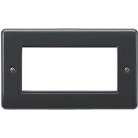 Gently contoured 7mm plate with rounded edges and anti-microbial properties. Inherent Anti-microbial properties. Single size suitable for up to 4 x 25 x 50mm or 2 x 50mm modules. Used to house modular inserts to create bespoke TV/SAT/HDMI/USB solutions Raised Slim & Rounded Profile Screwed Faceplate - Manufacturers part number: PM4G