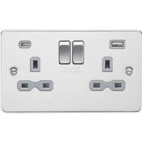 This charger socket is a great finishing touch to any modern home. Flat Plate low profile metal design with matching metal rocker. Built in dual USB Charger with both legacy USB-A port and the latest USB-C port13A Switched socketsDual USB C+A 5V DC 4.0A [shared]Ultra low profile design with built in gasketMinimum mounting box depth 25-35mm**dependent on wiring conditionsWE RECOMMEND YOU ALWAYS USE CERTIFIED USB CABLES FOR SAFETY AND TO ENSURE COMPATIBILITYTechnical SpecificationHeight: 87.5Width: 147.5Projection: 2.5Min. Mounting Box Depth: 25-35mm (dependent on wiring conditions)Construction: Premium grade steelFinish: Polished ChromeClass: IIP Rating: IP20Primary Voltage: 230V 50HzEarth Terminal: YesTechnical Specification:IP Rating: IP20 Colour: Polished ChromeDimensions: Height: 88mmWeight: 0.265KgWarranty: 2 Years - Manufacturers part number: FPR9940PCG