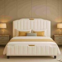 Add timeless sophistication to your bedroom with the Retro PU Leather Upholstered Bed Frame. Thoughtfully designed with sleek, clean lines and a soft, faux-leather finish, this double bed frame exudes retro charm while fitting seamlessly into modern interiors. The plush, padded headboard offers ultimate comfort for lazy Sunday mornings or late-night reading, while the durable wooden slats and metal frame provide excellent support and longevity. Scratch-resistant and easy to clean, the PU leather ensures...