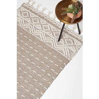 - Patna handwoven wool and cotton kilim rug with traditional geometric design and tassels. Measuring 120 x 170 cm. Colour: Beige, Natural.