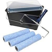 Paint larger surfaces fast with this Harris Trade 12 Scuttle Set. The 12 medium pile roller sleeves give a great finish on larger smooth and semi-smooth surfaces such as woodchip, previously painted or lightly textured walls and ceilings. These durable sleeves can be used with interior paints, enhanced the micropoly mix fabric gives optimal paint absorption for fast, even coverage with minimal spatter. As with all new sleeves, dampen the hand first & stroke sleeve to remove any excess, loose lint for th...