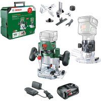 This all-in-one package consists of the Bosch ADVANCEDTRIMROUTER 18V-8 cordless router with an additional plunge base - making it easy to switch between edge trimming and plunge routing. All common working depths can be adjusted quickly thanks to a 7-step turret stop and the fine adjustment control enables millimetre precision for perfect results. Features & Benefits • Two in one cordless trim and plunge router • Part of the PowerForAll 18v Alliance (requires a PowerForAll 18v battery) • ... - Manufacturers part number: ADVANCEDTRIMROUTER18V8