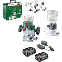 This all-in-one package consists of the Bosch ADVANCEDTRIMROUTER 18V-8 cordless router with an additional plunge base - making it easy to switch between edge trimming and plunge routing. All common working depths can be adjusted quickly thanks to a 7-step turret stop and the fine adjustment control enables millimetre precision for perfect results. Features & Benefits • Two in one cordless trim and plunge router • Part of the PowerForAll 18v Alliance (requires a PowerForAll 18v battery) • ... - Manufacturers part number: ADVANCEDTRIMROUTER18V8