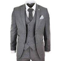 TruClothing Men's 3 Piece Suit Double Breasted Tweed in Grey | Size: 46R