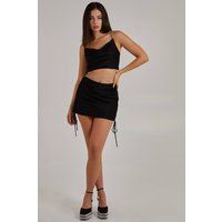 This Diamante Tie Waist Skirt is the perfect addition to any outfit for party season. With ruched detail and tie waist, this versatile style is the slay of the season. Pair with our Diamante Strap Cowl Neck Top for an effortless wardrobe winner. | Pink Vanilla Women's Diamante Tie Waist Skirt in Black | Size: Large - Manufacturers part number: Pink Vanilla_5056309983495
