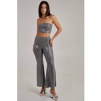 Stand out this party season and opt for our Sparkle Bandeau. Pair with our Sparkle Bandeau for the ultimate throw-on-and-go option. Sparkle like a disco ball and be the centre of any dancefloor. Pair with silver heels for a look to remember. | Pink Vanilla Women's Sparkle Flared Trousers in Silver | Size: Small - Manufacturers part number: Pink Vanilla_5056309995238