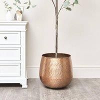 This Large Copper Hammered Metal Planter will enhance any houseplant and add a luxe feel to any home decor. Made from metal in a high shine copper finish with decorative hammered effect. PLEASE NOTE: You must use a lining with these planters to avoid rust if you are using them for real plants. If you place your planter outside, it will incur damage from natural weathering. Beautifully designed in a striking copper finish, this planter is a perfect accent piece for any home, ideal for modern, contemporar... - Manufacturers part number: BAH736 LRG (CIF241 LRG)