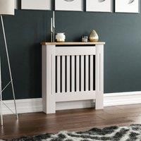 The Arlington Small Radiator Cover has a modern and stylish design with a slatted grill pattern that will look fantastic in any room. The combination of white paint with a contrasting oak effect shelf gives this cover a warm and traditional feel. The sturdy shelf provides a great place to display ornaments or photographs, ideal if you have a small room. A radiator cover is ideal if you have kids at home as it will protect them from radiator's hot surface. This radiator cover comes complete with a wall ... - Manufacturers part number: Lassic_