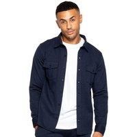 Enzo Mens Overshirt - Long Sleeve, Buttoned, Collared Stretch Overshirt with Two Pleated Flap Pockets on Chest, Stitched Trims on Sleeves and Hemline, Buttoned Sleeve Shirt Cuff, Centre Front Full Button Placket Fastening. Tailored with Premium Stretch Fabric for Extra Comfort | Enzo Men's Smart Stretch Overshirt in Navy | Size: Small