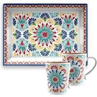 When dining outside it is always handy to have a serving tray to carry out food and drink to your friends and family. Both practical and beautiful, this Moroccan style tray is sure to stand out and bring colour to any meal time or event. With 2 lovely mugs to accompany it, this is perfect for carrying out a nice hot cup of tea or hot chocolate when camping or dining outside! With their ceramic like qualities and smooth finishing, these are easy to wipe clean and will be hard for you and your guests to e...