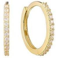 Seol + Gold 18ct Gold Plated Sterling Silver Cubic Zirconia Huggie Hoop Earrings Thin cubic zirconia studded huggie earrings, sold as a pair. Available in 18ct gold vermeil over sterling silver (.925). Outside hoop diameter measures 12mm (h) x 1.2mm (w), inside diameter measures 9mm. Hoops open and close with a hinged huggie fastening. Made using sterling silver (.925) and then finished with a clear e-coating to add longevity to each piece. Gift ready in our branded cotton gift bag Age Range: 3+ Fashion...