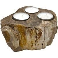 These candle holders are hand-carved, featuring a charming rustic texture. They serve as a stylish and elegant accessory that complements various interior styles. This holder is designed to fit a single tealight. Petrified Wood Candle Holders make for a beautiful decoration on a table, coffee table, or bedside table, adding a unique touch to any space. Each piece is one-of-a-kind, with natural variations and cracks formed during the petrification process. Please note that colours and patterns may vary f...
