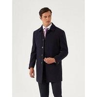 Skopes Formal Aldgate Overcoat - Navy Tailored fit overcoat in navy wool blend fabric. Features include single breasted, five button fly front fastening, slant handwarmer pockets, spot lining with centre back vent. Material Content: 50% Wool 50% Polyester Washing Instructions: Dry Clean Only
