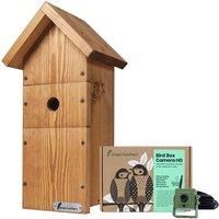 Our bird box camera with WiFi connection is our most popular camera for bringing nature indoors. Using the Green Feathers official app you can watch nesting birds on your smartphone or tablet in HD.This deluxe bundle includes a large handmade wooden bird box, built in the UK and purpose-designed to fit your Green Feathers camera, and a 10-metre power extension cable, so you£ll have everything you need to begin your wildlife watching journey.It£s straightforward to set up: simply connect up the power, mo...