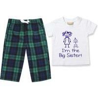 Childrens Novelty Tartan Pyjamas | 60 SECOND MAKEOVER Girl's I'm The Big Sister Pyjamas Children Tartan Trouser Bottoms Pyjama Set Sister in Green | Size: 2-3 Years