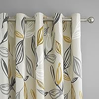 - Big, bold, beautiful leaves abound in tasteful grey and yellow shades bringing nature’s gloriously flowing lines into the home. The effortless spontaneity of this pair or lined curtains hints at the strokes of an artist’s brush, while the cool colours create an irresistible backdrop to everyday living.