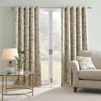 A stunning, hand-drawn flowery pattern in timeless hues adorns these exquisite curtains. Crafted with a unique weave that includes a blackout yarn, they effectively limit sunlight and retain warmth. Sold as a pair, these curtains boast an elegant eyelet heading and effortless draping. - Manufacturers part number: JRBRMETFDAHLIANATURAL0023