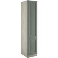 The Harrogate sage green single wardrobe with double rail comes with a MDF classic square frontal in a luxurious super matt finish an urban oak cabinet and soft close hinges. The flatpack quick build cabinet is delivered to a room of your choice. The modular furniture can be used for freestanding purposes or joined together to achieve a built-in look. Everything is manufactured to the highest standard in the UK using FSC material with a 10 year manufacturer's guarantee. Please note handles sold separat...
