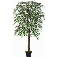 Outsunny 160Cm/5.2Ft Artificial Ficus Tree Fake Plant In Pot Indoor Outdoor Bring beautiful greenery into home and commercial areas, without the upkeep - pick this artificial ficus plant, from Outsunny for a breath of life this season and beyond. It's made from quality plastic for a long life, and is packed full of leaves in a realistic colour and feel - hard to tell the difference from the real counterpart. The faux design means zero maintenance too, so it will keep looking the same even without any w...