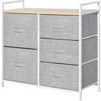 Bring easy and effortless storage into the home and beyond with this fabric drawer chest from HOMCOM. It features 2 small and three large drawers, giving you lots of room, with the flat surface top providing additional space. Made from linen, the drawers give a softened look to the appearance and feature handles to pull out easily. Connected to the metal frame with adjustable feet ensure this side cupboard keeps balanced, and it's finished with handles on the top so you can move it easily. - Manufacturers part number: 850126