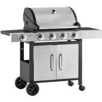 Leave eyes and mouths envious with this super-sleek BBQ grill from Outsunny. This multi-feature outdoor and garden piece is formed of the main enamel BBQ grill with upper warming rack, a side gas burner, cupboard and shelf on each side. Our BBQ smoker is made from a blend of stainless steel and metal for a tough shell, with cool-touch handles to prevent burns. A thermometer fitted on the lid means you can control the temperature better, it's finished with two wheels to move easily.Features:All burners ... - Manufacturers part number: 846066