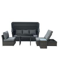 Get this Outsunny 5 PCS Outdoor Rattan Reclining Adjustable Canopy Sets w/ Dining Table from Offeroftheday for only £969.99. We found this offer , so hurry whilst stocks last!