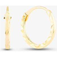 Adorn your outfits with this gorgeous pair of 9ct yellow gold earrings for a simple and stylish way to complete your look. The attractive slender design pairs well with any attire, boasting beautiful diamond cut detailing that shimmers and catches light wonderfully. - 9ct Yellow Gold - Diamond Cut Detailing - Small Hoop Earrings