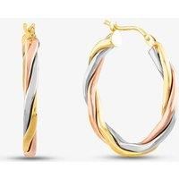 Crafted in a luxurious 9ct three colour gold, these eye catching 20mm hoop earrings feature a delicate twist design.