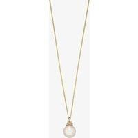 Crafted in 9ct yellow gold, this beautiful pendant features a box chain adorned with a diamond encrusted freshwater pearl pendant. - Multi Stone - Gold Pendant - 16 Inch