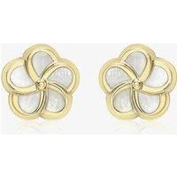 Crafted in 9ct yellow gold, these pretty stud earrings feature a delicate flower shape. The studs are embellished with a glistening mother of pearl detail. Finished with butterfly clasp fastening for easy wear and safe removal.
