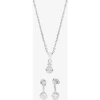 Add subtle sophistication to your outfit with this high-polished bezel-set pendant and matching earrings. The pendant is formed from the melding of the bezels of the larger and small stone, with the inclusion of a jump ring to connect to the triangular bale, whilst the cubic zirconia of the earrings are joined by a slim bar. The clean sharp lines provided by the bar and the bale contrast beautifully with the curves of the stone for a contemporary finish. - White Cubic Zirconia Pav - Sterling Silver - Pe...