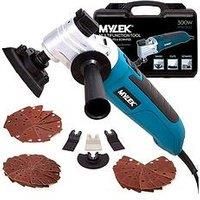 Mylek Multi Tool 300W Oscillating Electric Multifunction Tool, Quick Blade Release with 48 Piece Accessory Kit and Carry Case VERSATILE & SAFE: 6 variable speeds to choose from making this one of the safest ways to saw, trim, cut and sand a variety of materials including copper pipes, plastic pipes, soft non-ferrous metals, plasterboard, laminates, wood, carpets, ceramic tiles and also removing tough sealants and grouts. QUICK BLADE RELEASE/CHANGE FUNCTION: The no-hassle tool-free lever-type lock system...