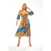 Asymmetric Line, Fake Wrap Style, V-Neck, Balloon Sleeves, Crossover front, Frill details, Midi Length, Luxe Silky Feel
