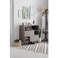 Introducing the Dark Coffee & Mocha Shoe Storage Unit, a stylish and functional addition to your home organization. This elegantly designed unit features four spacious shelves that provide ample storage for your shoe collection, complemented by two large cabinets that lift down to reveal even more hidden space for accessories or other belongings. The combination of a dark coffee frame and mocha drawers creates a sophisticated two-tone finish that enhances any decor. The black curved metal frame not only adds stability but also acts as a secure stop for your shoes, ensuring they stay neatly in place. Crafted from the highest quality materials on the market, this shoe storage unit is built to last. Delivered flat packed in eco-friendly, fully recyclable outer packaging, it has been drop tested to rigorous standards to ensure a damage-free delivery. Elevate your entryway or mudroom with this elegant and practical shoe storage solution today! | FWStyle 2 Drawer Shoe Storage Cabinet Sideboa... - Manufacturers part number: FWStyle_5056413127099