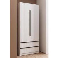 Introducing the 2 Door 2 Drawer Ripple Effect White Combination Wardrobe, a stylish and functional storage solution for your bedroom. Delivered flat packed for fast and hassle-free home delivery, this wardrobe is crafted from the highest quality materials on the market, ensuring durability and long-lasting appeal. Featuring elegant scalloped ripple effect door fronts, this wardrobe adds a unique touch to your decor. It is equipped with strong easy-grip black metal pull-style handles for convenient access. Inside, you'll find an integrated strong metal hanging rail, perfect for organizing your clothing. Additionally, the two large drawers provide ample storage space for accessories, shoes, or other essentials. Finished in an elegant matt white painted finish, this combination wardrobe seamlessly blends with any interior style. | FWStyle Matt White 2 Door 2 Drawer Combination Wardrobe Ripple Effect Finish Scalloped - Manufacturers part numbers: LAN2DCMWHT|FWStyle_5056413127280