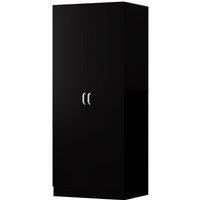 Introducing the FWStyle 2 Door Tunis Wardrobe, a stylish and functional addition to your bedroom decor. Featuring a sleek matt black finish, this wardrobe complements a variety of interior styles while providing essential storage solutions. With an integral metal hanging rail and an overhead storage shelf, it offers ample space for organizing your clothing and accessories efficiently. Part of the elegant Tunis Range, this wardrobe is designed to blend seamlessly with your existing furnishings. Delivered flat-packed for convenient assembly, it also includes a 1-year guarantee, ensuring your purchase is protected. Elevate your bedroom with the FWStyle 2 Door Tunis Wardrobe, where style meets practicality in perfect harmony. | FWStyle 2 Door Double Wardrobe Black Scratch Resistant Storage - Manufacturers part number: FWStyle_5056413127723