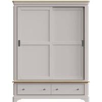 Introducing our elegant 2 Door 2 Drawer Sliding Combination Wardrobe in a stunning Grey Painted Oak finish. This wardrobe is designed to bring both style and functionality to your bedroom. The dove grey painted finish, complemented by oak accents, creates a sophisticated and contemporary look. Crafted from a blend of oak, oak veneer, and MDF, this wardrobe offers durability and longevity. | FWStyle Sliding Wardrobe 2 Door With 2 Drawers Grey Painted Oak - Manufacturers part number: FWStyle_5056413128775