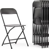 Prepare your event space, home, or business for any occasion with this 10-pack of black folding chairs, thoughtfully designed for strength, practicality, and versatility. Built with a heavy-duty 18-gauge powder-coated steel frame, these chairs are engineered to withstand frequent use indoors or out. The contoured plastic seats and backs feature textured grip surfaces and drainage holes, ensuring comfort and quick drying after exposure to moisture. What truly sets these chairs apart is their space-saving convenience: they fold flat and stack neatly up to 50 high making them ideal for venues, offices, schools, or smaller homes. Each chair weighs just 3.4 kg, so setup, carry, and repositioning are effortless. Best of all, these chairs require no assembly simply unpack and use. With durability, portability, and smart design all wrapped into a functional 10-pack, youll always be ready with quality seating at your fingertips. | FWStyle Pack Of 10 Black Folding Chairs Indoor & Outdoor Use - Manufacturers part numbers: 10-LE-L-3-BK-GG|FWStyle_5056413133984
