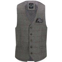 Elevate your wardrobe with the KANO Herringbone Tweed Check Grey Waistcoat, inspired by vintage 1920s style. This sophisticated waistcoat features a unique beige, grey, and navy blue herringbone weave, adding a luxurious touch. Perfect for weddings or smart casual events, it has a single-breasted front with button closure, welt pockets, and a fitted silhouette. The plain satin back includes adjustable straps for a personalized fit, while the fully lined interior ensures comfort. Crafted from 50% cotton ... - Manufacturers part number: AMZCH-PWC-KANO