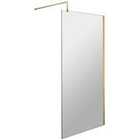 Hudson Reed WRSBB90 Modern Bathroom /'Shower Shield/' Coated 8mm Toughened Safety Glass Wetroom Screen with Support Bar, 900mm, Brushed Brass